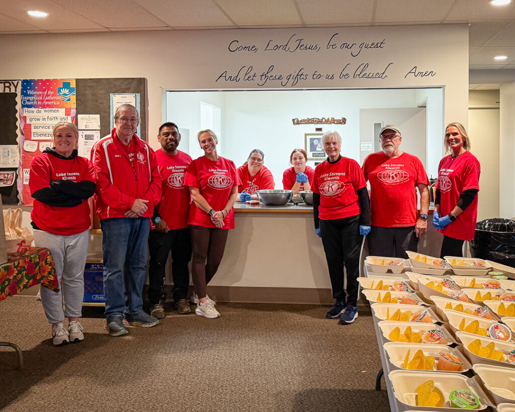 October 17, 2025 – Big smiles and busy hands! Lake Stevens Kiwanis members joined the crew at Ebenezer Lutheran Church yesterday to help prepare and serve the weekly free community dinner. Great food, great teamwork, and lots of heart—thanks to everyone who came out to make a difference!