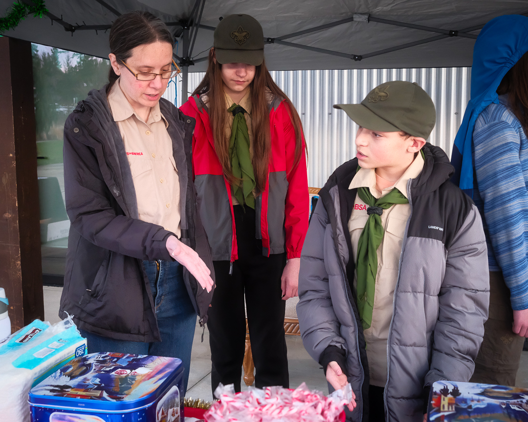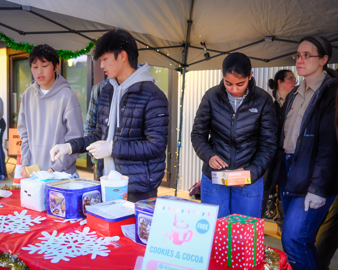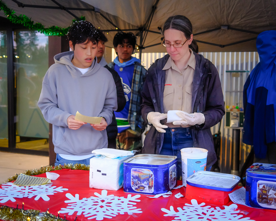 Fun times and another successful Kiwanis Winterfest celebration! We had a booth where we handed out hot drinks and cookies. We also put in a request for a visit from Santa, and here he is with one of his elves! So plenty of kids (and a few parents) were able to get a picture with Santa! Thank you to the City of Lake Stevens for putting on the event, to BSA Troop 41 for assisting in our Kiwanis booth, to the Snohomish Regional Fire and Rescue Station 81 for bringing Santa from the fire station (where his sleigh and reindeer were tended to), and especially to Nicole Perez and Tosha Edwards for organizing and setup of the Kiwanis booth! And especially to Santa and his elve for dropping by!